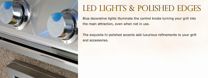 - 25,000 BTU burners, constructed of 14 gauge 304 stainless steel with lifetime warranty